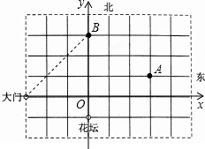 (3)建筑物B在大门北偏东45°的方向,并且B在花坛的正北方向处,请写出B点的坐标.
