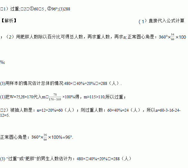 £¨1£©Ä³ÄÐÉúµÄÉí¸ßÊÇ170cm£¬ÌåÖØÊÇ75kg£¬ËûµÄÌåÖÊÆÀ¼Û½á¹ûÊÇ £»