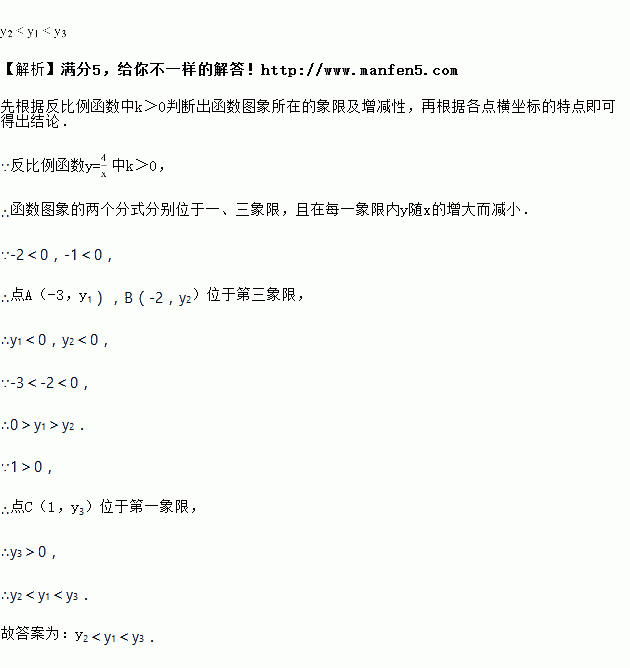 已知点,,都在反比例函数的图象上,则、、的大小关系是________.