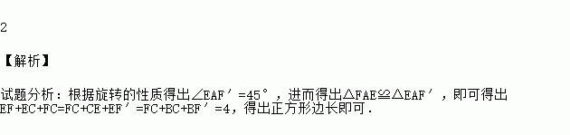 如图,在正方形ABCD中,E、F分别是边BC、CD上的点,∠EAF=45°,△ECF的周长为4,则正方形ABCD的边长为 .