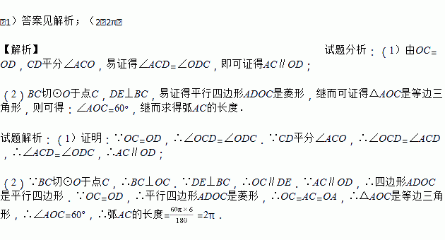 如图,⊙O的半径为6cm,经过⊙O上一点C作⊙O的切线交半径OA的延长于点B,作∠ACO的平分线交⊙O于点D,交OA于点F,延长DA交BC于点E.