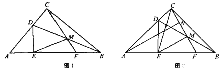 如图1,Rt△ABC中,∠ACB=90°,点D为边AC上一点,DE⊥AB于点E,点M为BD中点,CM的延长线交AB于点F.