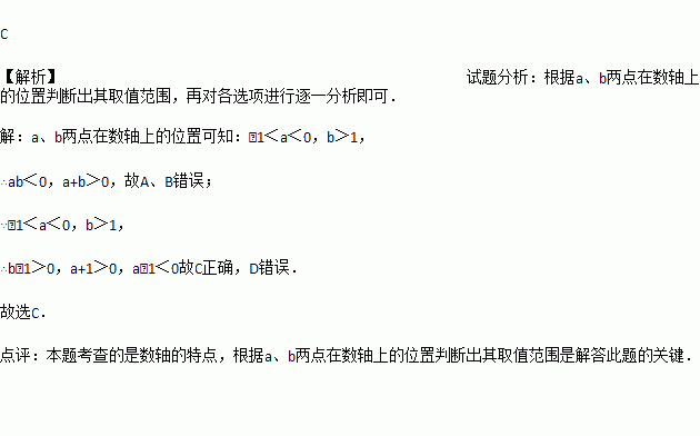 A. ab>0 B. a+b<0 C. (b-1)(a+1)>0 D. (b-1)(a-1)>0
