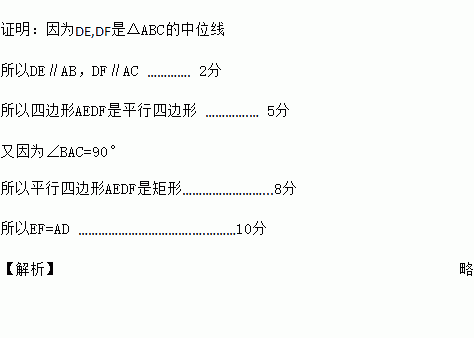 .已知:如图4,在中,∠BAC=90°,DE、DF是的中位线,连结EF、AD. 求证:EF=AD.
