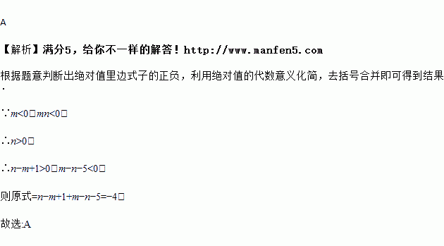 A. -4 B. 4 C. 2n-2m+4 D. 无法确定