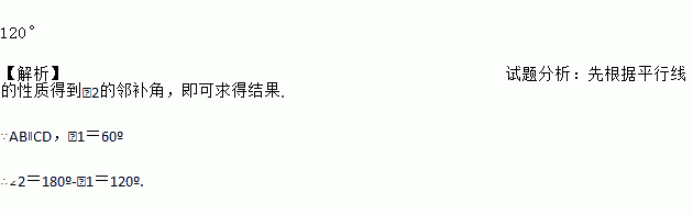 如图,已知∥,∠1=60°,则∠2=__________.