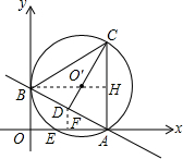 的纵坐标相等,故可得出O′的坐标,再由CA∥BO,BH⊥AC可知BH⊥OB且过⊙O′半径的外端,故可得出OB是⊙O′的切线,由切线长定理可得OB2=OE•OA,进而可求出OE的长,故可得出E点坐标,