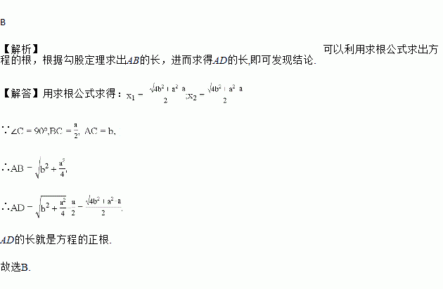 欧几里得的《原本》记载,形如的方程的图解法是:画,使,,,再在斜边上截取.则该方程的一个正根是( )