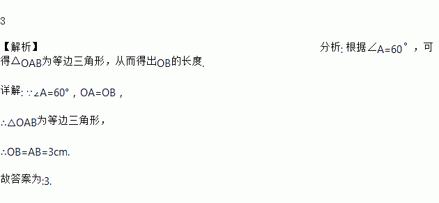 如图所示,在⊙O中,若∠A=60°,AB=3 cm,则OB=________ cm.
