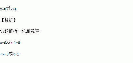 方程x(x-1)=0的根是______________.