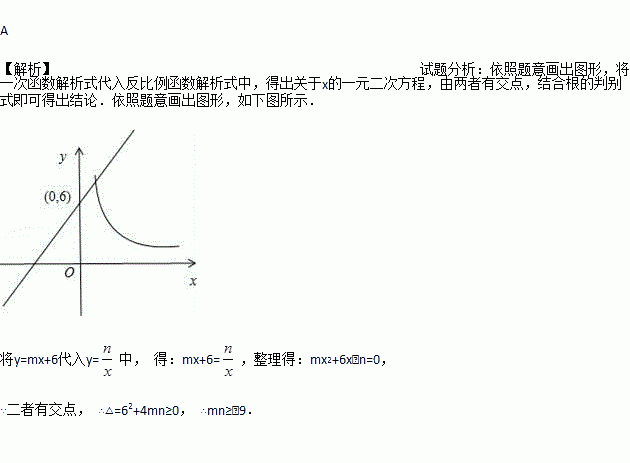 若一次函数y=mx+6的图象与反比例函数y=在第一象限的图象有公共点,则有( )