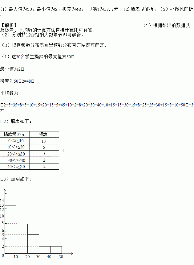 ijУѧÉú»ý¼«ÎªµØÕðÔÖÇø¾è¿î·îÏ×°®ÐÄ£®Ð¡Ó±Ëæ»ú³é²éÆäÖÐ30ÃûѧÉúµÄ¾è¿îÇé¿öÈçÏ£º£¨µ¥Î»£ºÔª£©2¡¢5¡¢35¡¢8¡¢5¡¢10¡¢15¡¢20¡¢15¡¢5¡¢45¡¢10¡¢2¡¢8¡¢20¡¢30¡¢40¡¢10¡¢15¡¢15¡¢30¡¢15¡¢8¡¢25¡¢25¡¢30¡¢15¡¢8¡¢10¡¢50£®