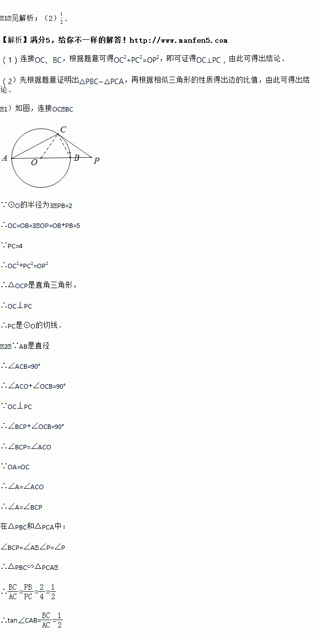 如图,C是⊙O上一点,点P在直径AB的延长线上,⊙O的半径为3,PB=2,PC=4.