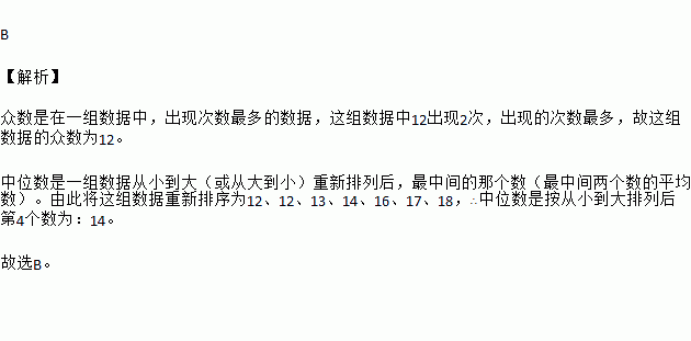 某组7名同学在一学期里阅读课外书籍的册数分别是:14,12,13,12,17,18,16.则这组数据的众数和中位数分别是( )