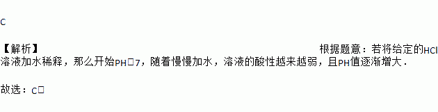 我们知道,溶液的酸碱度由PH确定.当PH>7时,溶液呈碱性;当PH<7时,溶液呈酸性.若将给定的HCl溶液加水稀释,那么在下列图象中,能反映HCl溶液的PH与所加水的体积(V)的变化关系的是( )