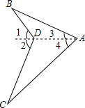 分析:(1)过点A、D作直线AD,由三角形外角的性质可知,∠1>∠3,∠2>∠4,故可得出结论;