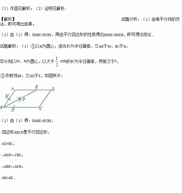 (1)利用尺规作∠ABC的平分线BE,交AD于E(保留作图痕迹,不写作法);