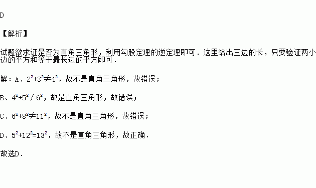 A.2,3,4 B.4,5,6 C.6,8,11 D.5,12,13