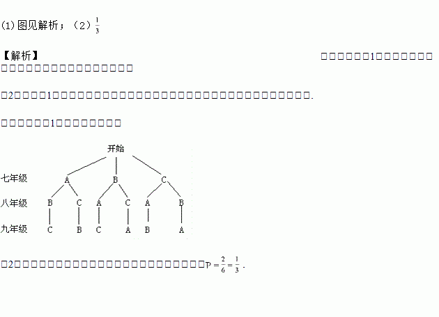 “学雷锋活动日”这天,阳光中学安排七、八、九年级部分学生代表走出校园参与活动,活动内容有:A.打扫街道卫生;B.慰问孤寡老人;C.到社区进行义务文艺演出.学校要求一个年级的学生代表只负责一项活动内容.