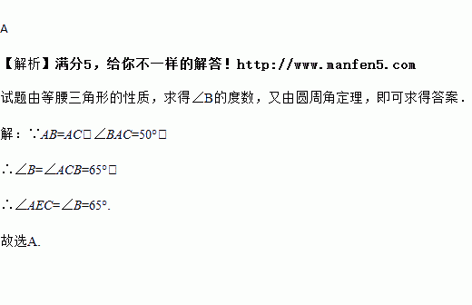 如图,⊙O中,=,∠BAC=50°,则∠AEC的度数为( )