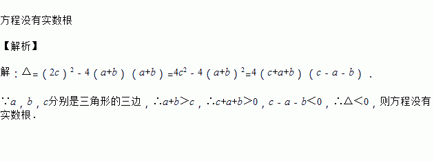 已知a,b,c分别是三角形的三边,则方程(a+b)x2+2cx+(a+b)=0的根的情况是_____.