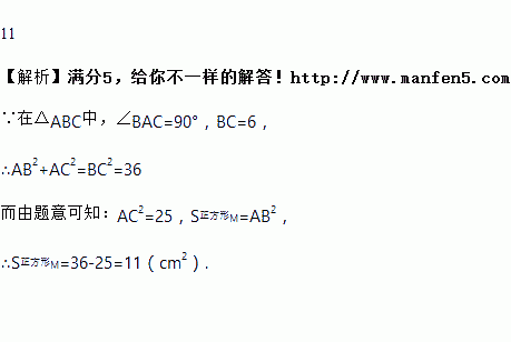 如图,△ABC中,∠BAC=90°,BC=6,以△ABC的三边向外作正方形,以AC为边的正方形的面积为25cm2,则正方形M的面积为_____cm2.
