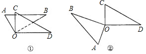 如图①②所示,将两个相同三角板的两个直角顶点O重合在一起,像图①②那样放置.