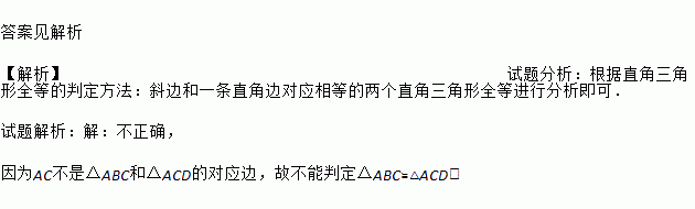 如图,已知∠B=∠ACD,∠ACB=∠D=90°,AC是△ABC和△ACD的公共边,所以就可以判定△ABC≌△ACD.你认为这种说法正确吗?如果不正确,请说明理由.