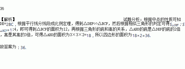 如图,在□ABCD中,点E是边AD的中点,EC交对角线BD于点F,若S△DEF =3,则S□ABCD =_______.