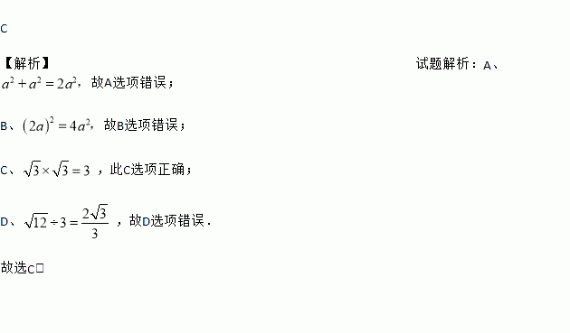 A. a2+a2=2a4 B. (2a)2=4a C. D.