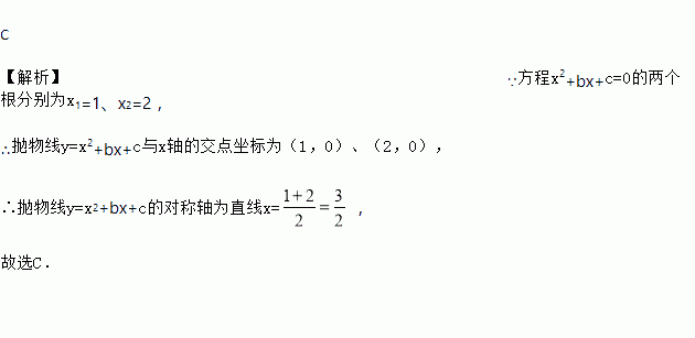 若关于x的一元二次方程x2+bx+c=0的两个根分别为x1=1,x2=2,那么抛物线y=x2+bx+c的对称轴为直线( )