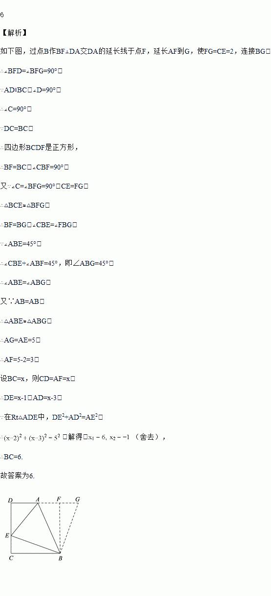 如图,在四边形ABCD中,AD∥BC (BC>AD),∠D=90°,∠ABE=45°,BC=CD,