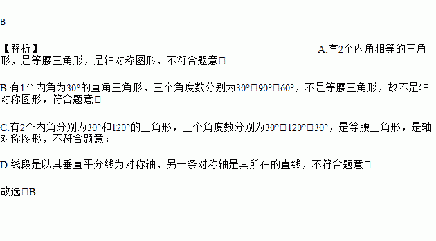 C. 有2个内角分别为30°和120°的三角形 D. 线段