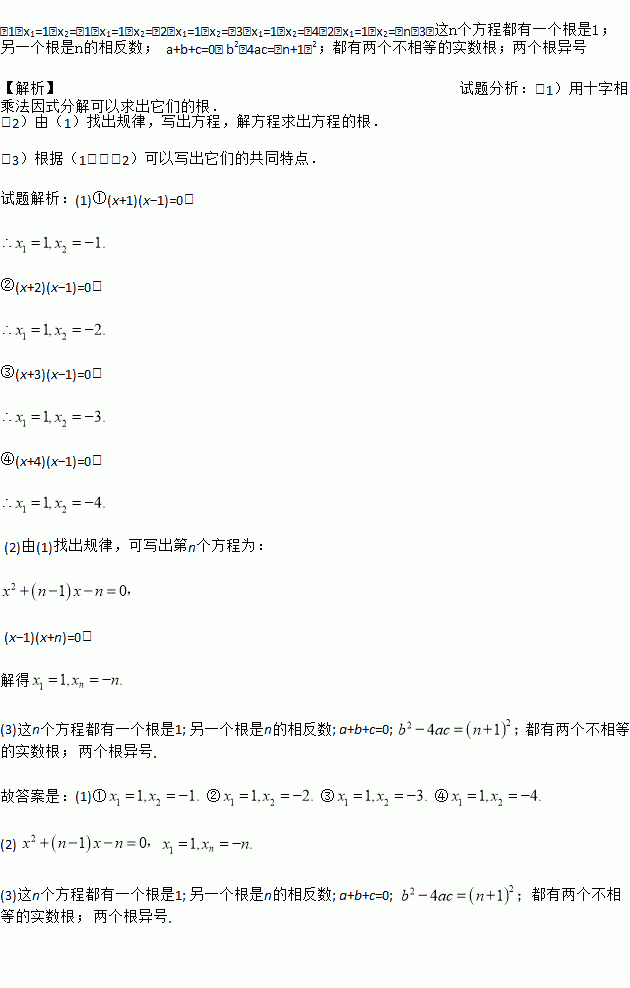 (3)请你指出这n个方程的根有什么共同的特点(写出一条即可).
