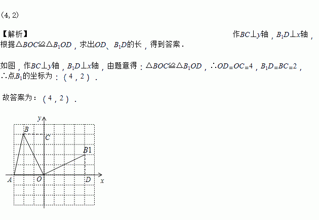 如图,正方形网格中的每一个小正方形的边长都是1,△AOB的三个顶点都在格点上.以O为坐标原点,建立如图平面直角坐标系,若把△AOB绕着点O顺时针旋转90°得到△A1OB1,则点B旋转后的对应点B1的坐标为_____________.