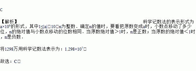 A. 1298×104 B. 12.98×106 C. 1.298×107 D. 1.298×103