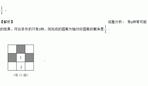 如图,在“3×3”网格中,有3个涂成黑色的小方格.若再从余下的6个小方格中随机选取1个涂成黑色,则完成的图案为轴对称图案的概率是______.