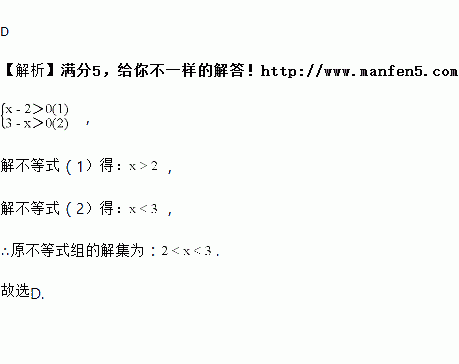 A. x>2 B. x<3 C. x>2或 x<﹣3 D. 2<x<3