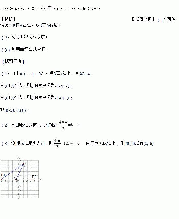 如图,A(﹣1,0),C(1,4),点B在x轴上,且AB=4.