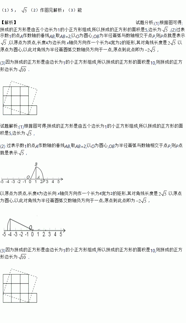 (3) 你能把这十个小正方形组成的图形纸,剪开并拼成一个大正方形吗?若能,在图中画出拼接后的正方形,并求边长,若不能,请说明理由.