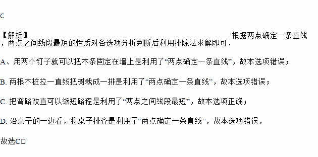 在下列日常生活操作中,体现“两点之间线段最短”的是( )
