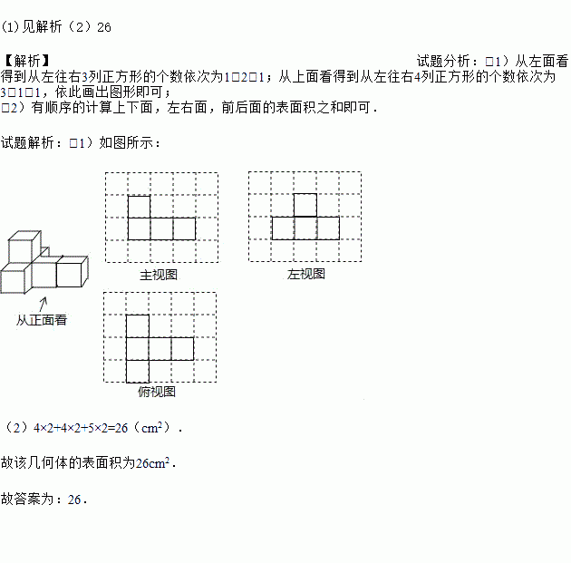 (1)该几何体的主视图如图所示,请在下面方格纸中高分别画出它的左视图和俯视图;