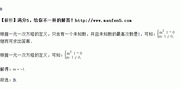 A. m=0 B. m=﹣1 C. m=±1 D. m≠﹣1