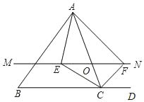 △ABC中,点O是AC边上一个动点,过点O作直线MN∥BC,设MN交∠BCA的平分线于E,交∠DCA的平分线于点F.