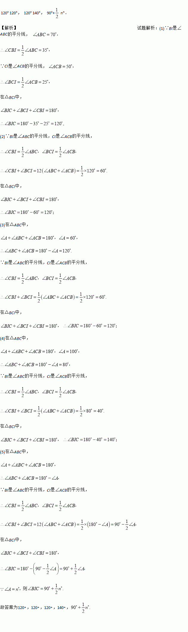 (5)若∠A=n°,则∠BIC=__.