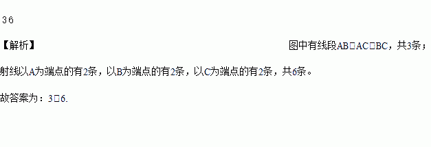 如图,点A,B,C在直线l上,则图中共有______条线段,有______条射线.