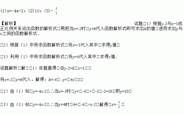 已知y-2与x+1成正比例函数关系,且x=-2时,y=6.