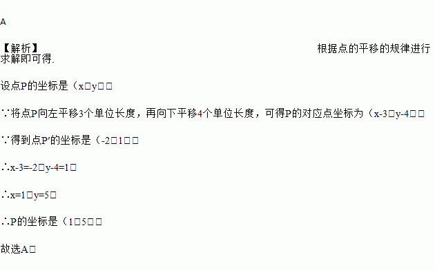 点P是平面直角坐标系中的一点,将点P向左平移3个单位长度,再向下平移4个单位长度,得到点P′的坐标是(﹣2,1),则点P的坐标是( )