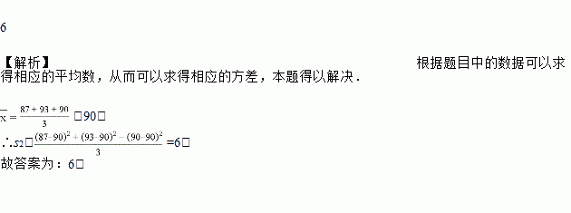 小米的爸爸为了了解她的数学成绩情况,现从中随机抽取他的三次数学考试成绩,分别是87,93,90,则三次数学成绩的方差是_____.