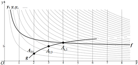 (3)画出双曲线y3=$\frac{3}{x}$的“派生曲线”g(g与双曲线y3=$\frac{3}{x}$不重合),使其经过“双曲格点”A2,a、A3,3、A4,b.